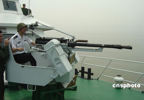 宁波海关和浙江省海警二支队日前联合在杭州湾某海域进行艇载高射机枪实弹射击训练,以推进宁波海关缉私警察的准军事化纪律部队的建设,提高海上缉私打击的精准度,增强海上缉私能力和对抗能力,保持宁波海域打击走私的高压态势。中新社发 王少华 摄