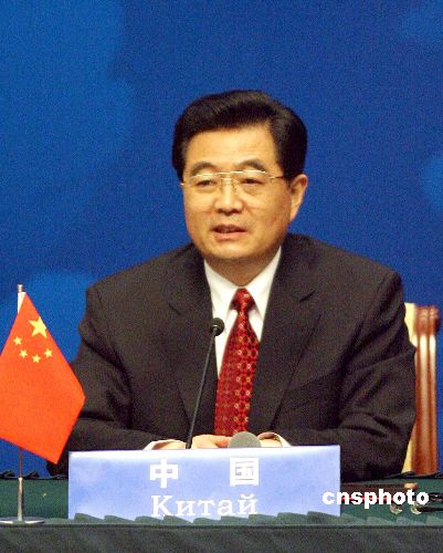 六月十五日,上海合作组织成员国元首理事会第六次会议在上海举行。会后,上合组织成员国领导人共同会见了中外记者,图为中国国家主席胡锦涛在记者会上讲话。中新社发 廖文静 摄