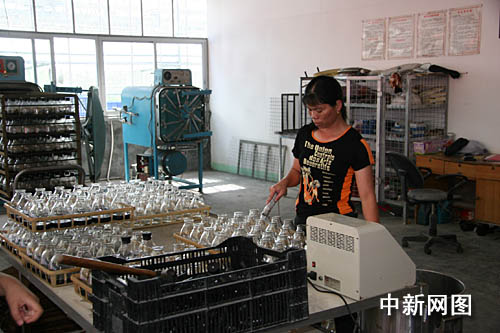 创业园内的员工正在往幼苗内灌注培养液