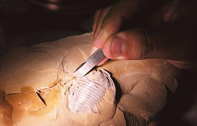 7月1日,正在俄罗斯圣彼得堡召开的第36届世界遗产委员会会议宣布,将中国澄江化石地列入《世界遗产名录》。至此中国拥有首个化石类世界遗产。图为云南澄江动物化石博物馆的工作人员在修复“三叶虫”化石。