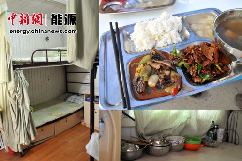 据了解,石油工人们每月的伙食标准是500元,每餐有两荤一素三个菜和一道汤。4个人或8个人住在一间房,有空调、有网络,但石油工人的寂寞却非旁观者可以体会。