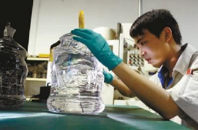 ■重庆四联光电科技公司员工检查生产的蓝宝石 记者 毕克勤摄