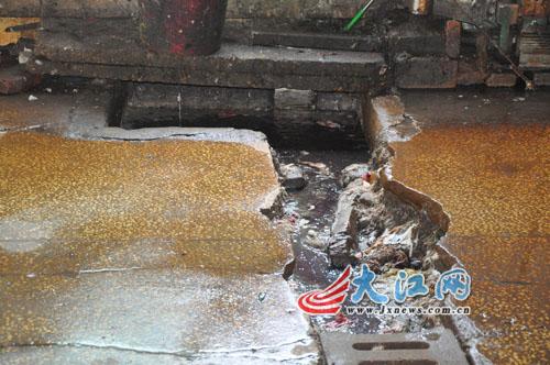 随后记者来到南昌市青山湖食品公司扬子洲定点屠宰场,据观察,屠宰场有至少两处污水排放口直接通到中心渠,由于污染严重,这里的水面呈现乌黑状,水边还露出很多黑色的污染沉淀物。