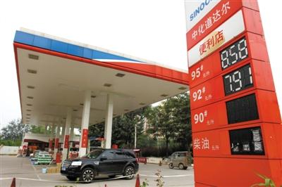 昨日,位于姚家园路与星火西路的中化道达尔加油站92#汽油的零售价是7.91元,比发改委规定的最高零售价低0.15元。记者 侯少卿 摄