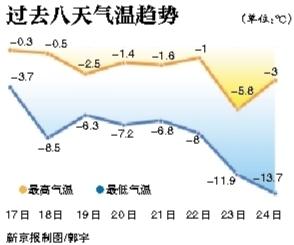 昨天早上,京城的气温只有-13.7℃,打破了近十年来同期最低气温的纪录,也是此次寒潮过程中气温最低的时刻。此后,气温将缓慢回升。