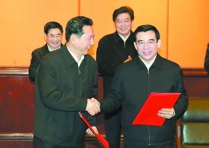 4月8日至10日,北京市代表团赴山西省学习考察,以进一步推动两地的交流合作、科学发展。9日下午,京晋双方签署《关于深化落实〈区域合作框架协议〉的实施意见》和六个专项协议,为全面深化在能源、工业、金融、商贸、科技、旅游等多领域、多层次的经济社会合作明确了方向和任务。中共中央政治局委员、北京市委书记郭金龙,市委副书记、市长王安顺与山西省委书记、省人大常委会主任袁纯清,省委副书记、省长李小鹏出席座谈会和签约仪式。