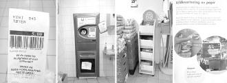 挪威的超市里设有自动回收瓶子和易拉罐的机器,供市民回收瓶子和易拉罐。回收机器通向超市的仓库。市民在将瓶子、易拉罐投入机器的同时机器会自动分拣,将不符合要求的瓶子或易拉罐退回。与此同时,机器上的屏幕会显示相应的金额。回收完毕后按下“确认”按钮,这时机器会打印出回收金额的单据。凭借这张单据,市民可以在购物结账时直接抵用相应金额的现金,也可以凭借单据到银行兑换成当地货币。