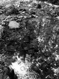 在村民的指引下,于一处绿荫间觅得了沸泉泉眼,这也是千年古泉的源头。泉水清澈见底,沁凉逼人,泉眼不大,宽不过一米,长不过三米,最深处不过0.60米。沸泉奇特之处在于,她不仅是从山崖石洞中出水,还从地底涌水。因前几日下雨,泉水流量随之增大,一串串大泡泡从泉底泥土下不时争先恐后地冒出来,如沸如腾。“这里的水,祖祖辈辈都用,我们用它灌溉农田,也用于人畜饮用。”据村民介绍,就在三十年前,沸泉足有篮球场大小的水域,地下冒着水泡,蔚为壮观。而且,水温冬暖夏凉,附近十里八乡的顽童每逢炎夏,都会潜到水中游泳。