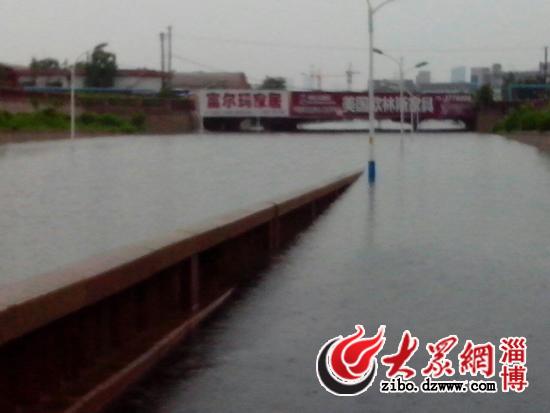 山东淄博多个路段积水严重 张辛桥“汪洋一片”
