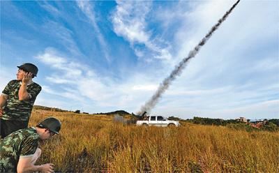 今年以来,湖南省祁东县遭遇罕见的旱情,气象局将人工增雨常态化。图为祁东县气象工作者在发射增雨火箭弹。新华社记者 龙弘涛摄
