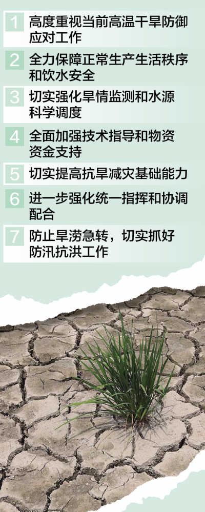 旱情声声告急,各部门、各地方打响一场抗伏旱攻坚战。国家防总7月30日启动全国抗旱Ⅳ级应急响应,派出36个工作组分赴各地协助指导地方做好抗旱工作。在前期安排16.5亿元中央特大抗旱经费的基础上,商财政部再安排一批特大抗旱经费支持旱区。