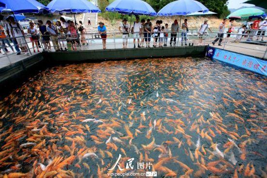 连日来,浙江省各地持续高温,淳安千岛湖气温连续多日高达38度以上,湖光山色的千岛湖风景区数十万尾红色金鱼碧波畅游,风情万种,吸引众多游客吸引众多游客前来观光欣赏拍照。施广德/人民图片