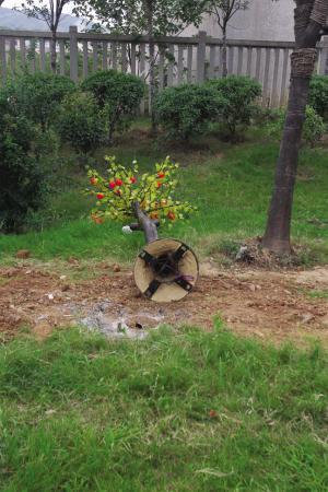 “种”上这样一排没有生命、也没有生气的假树,其效果,肯定是大煞风景。而且,树是自然生长的,耗费资源去做假树,也与生态、低碳不相吻合。假树还占了真树的“地盘”和空间,事实上是影响甚至有损绿化。