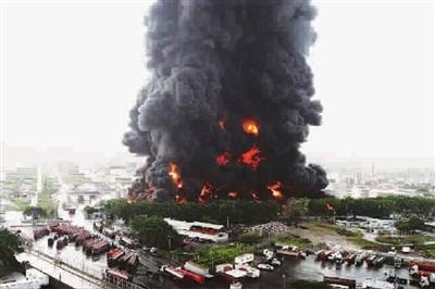 据委内瑞拉媒体8月11日报道,位于该国东部的委内瑞拉石油公司拉克鲁斯港炼油厂当天遭遇雷击引发大火(见图),暂时没有人员伤亡的消息。