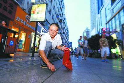 别以为捡垃圾是件轻松活儿。8月17日晚,记者陪鲁新海在步行街上来回捡了三遍,不记得弯了多少次腰,走了多少米路,只觉得腰腿酸痛。而鲁新海只用了15分钟左右,就捡了满满一大袋垃圾。“你看看这些烟头和冰棒袋、烧烤竹签都是有消费能力的人丢的,可就是不知道多走几步丢进垃圾桶啊!”鲁新海边感叹,边捡起一个烟头。