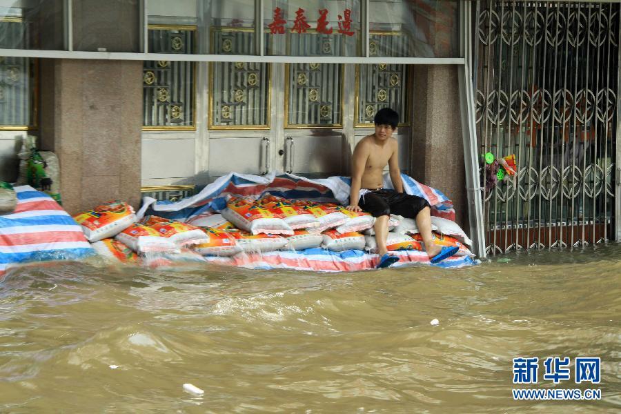 新华社照片,汕头(广东),2013年8月20日 广东汕头洪水未退台风又来 8月20日,广东汕头潮南区部分城区仍被洪水淹没。当日,广东汕头抗洪救灾各项工作正在紧张有序开展中。从8月17日起,汕头市遭受特大暴雨袭击,全市转移人口14.489万人,倒塌房屋236间,受浸农作物12.269万亩。受强热带风暴“潭美”逐渐靠近影响,20日午后汕头市潮阳区北部出现了局地雷雨大风天气。预计21日夜间到23日,汕头市还将出现暴雨过程。新华社发(姚军 摄)