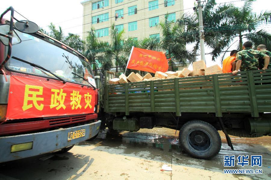 新华社照片,汕头(广东),2013年8月20日 广东汕头洪水未退台风又来 8月20日,在广东汕头潮南区司马镇,民政救灾车运来救灾物资。当日,广东汕头抗洪救灾各项工作正在紧张有序开展中。从8月17日起,汕头市遭受特大暴雨袭击,全市转移人口14.489万人,倒塌房屋236间,受浸农作物12.269万亩。受强热带风暴“潭美”逐渐靠近影响,20日午后汕头市潮阳区北部出现了局地雷雨大风天气。预计21日夜间到23日,汕头市还将出现暴雨过程。新华社发(姚军 摄)