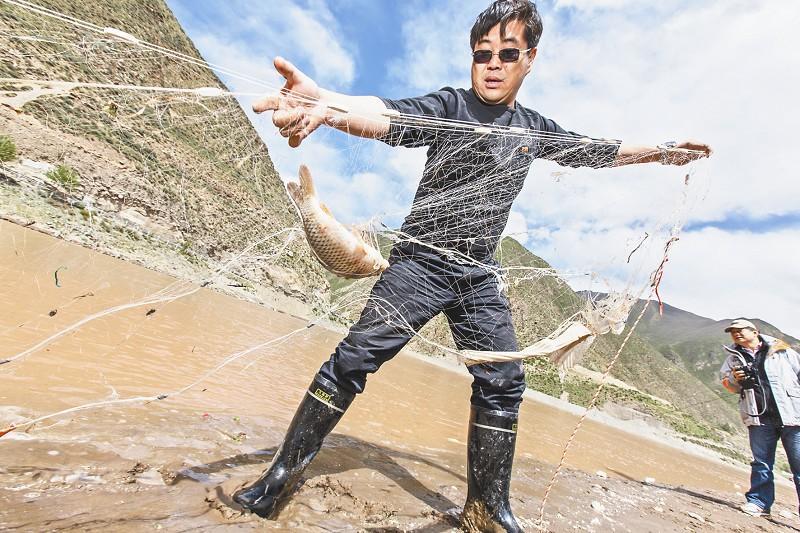 图为:科考队在通天河采集鱼类样本 通讯员孙晓东摄