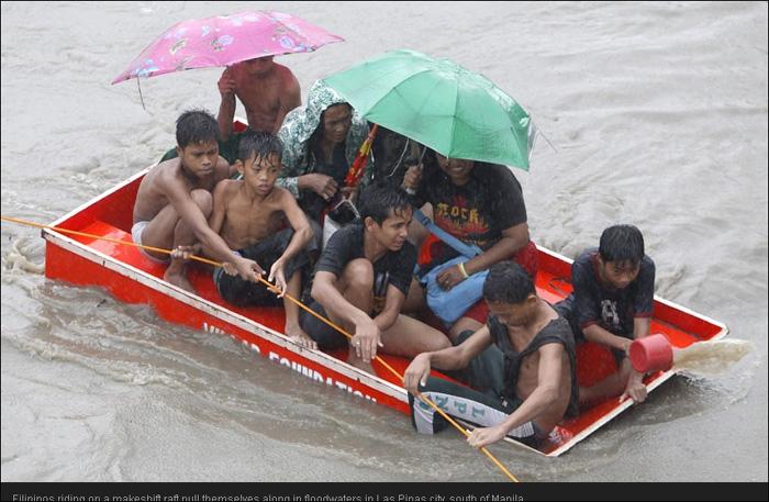 菲律宾首都马尼拉洪水泛滥 民众乘竹筏出行(图)(4)