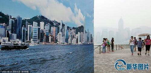 香港空气污染严重 游客与“假蓝天”合影(图)(2)