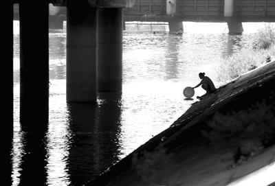 昨日,一位市民在清河里洗刷物品。记者 王叔坤摄