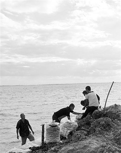8月22日,嫩江洪峰已通过吉林省镇赉县白沙滩,并向大安市推进。图为抢险人员在吉林省前郭县库里泡水库修护大堤。新华社记者 齐海山摄