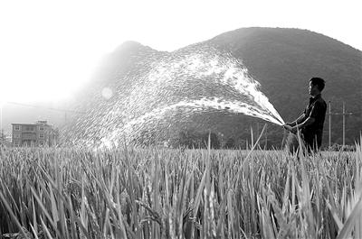 江西省气象局日前启动重大气象灾害(干旱)Ⅲ级应急响应。截至目前,江西共有41个县市区达到气象干旱等级中度以上。图为8月7日,江西省瑞昌市南义镇王家铺村村民在浇灌干旱的稻田。 新华社记者 温美良摄