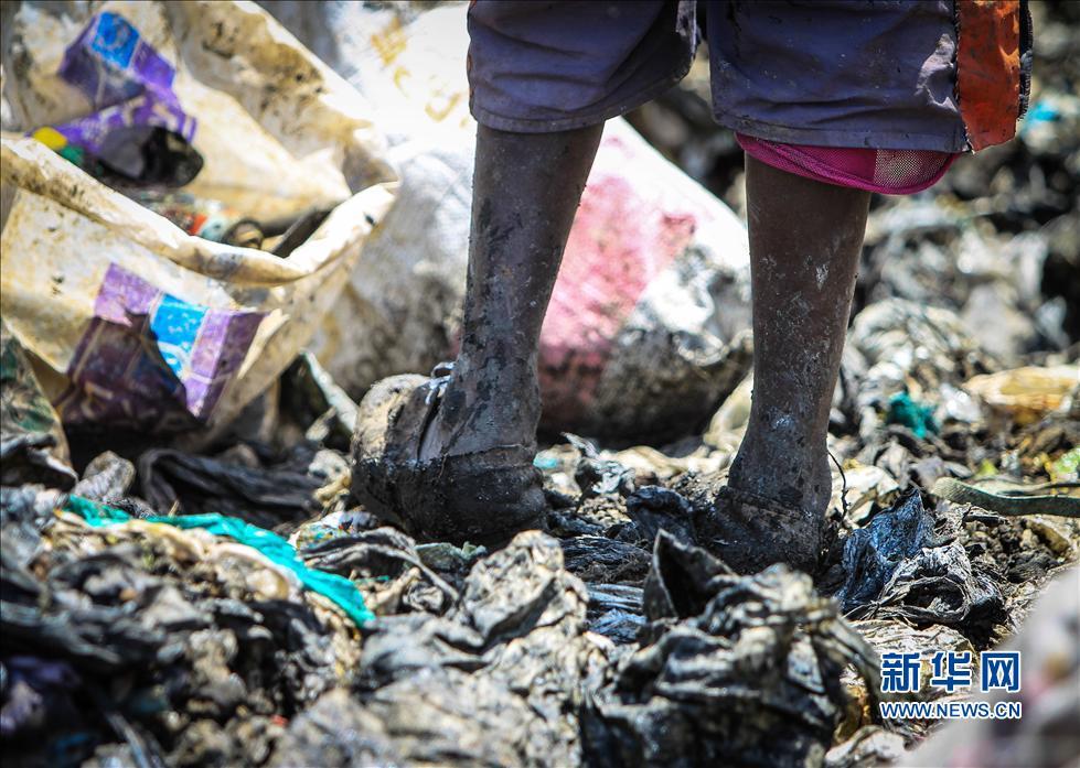 新华社照片,内罗毕,2013年9月5日 (国际)(1)走进非洲最大的垃圾填埋场丹多拉9月4日,在肯尼亚内罗毕的丹多拉垃圾场,一名拾荒者在垃圾中行走。丹多拉垃圾填埋场占地约1.2万平方米,平均每天接收来自内罗毕的约2000吨城市生活垃圾,是非洲最大的垃圾填埋场之一。目前有超过两千名拾荒者在这里工作,大多是脱离家庭的妇女和无家可归的儿童。他们在恶劣的环境中工作却没有防护措施,每天收入只有150-300先令(约合10-21元人民币)。新华社记者孟晨光摄