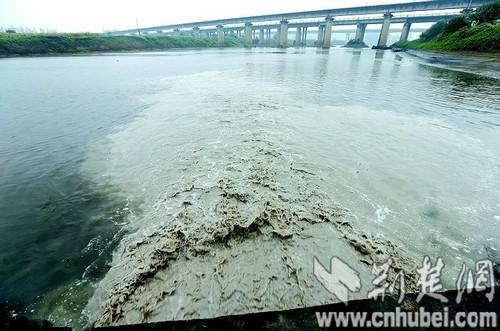 图为:昨日,在府河云梦县与应城市交界处隔蒲潭大桥附近,一排污口正在向府河排污。(记者 倪娜 本报视界网 黄丹 摄)