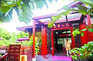 临江大道海滨花园南门对面的绿道小木屋如今成了一家古色古香的茶艺馆。