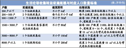 《标准》对包括垃圾收集点、垃圾收集容器间、垃圾收集站和垃圾转运站在内的生活垃圾收集转运设施的规划和建设做了详细说明。《标准》要求,在进行新区建设和旧区改建时,应相应配建生活垃圾收集转运设施,并做到同时设计、同时施工、同时竣工验收、同时交付使用。