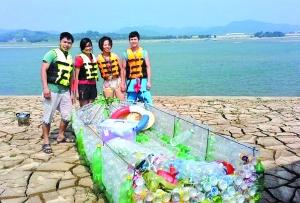 原标题:饮料瓶制漂流艇 4勇士北江梦幻游