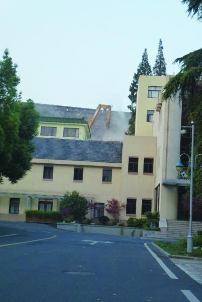 市府大院内正在拆除靠明城墙的老楼。朱荣康摄