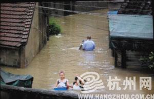 我爸驾驶着它试图出去,出门10米就遇到还在汹涌漫进来的姚江水,逆水行舟,他只好退了回来。他解释,“外面那个转弯有漩涡,跟三江口一样了!”
