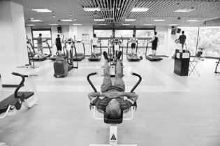 ▲社区居民在台北市北投垃圾焚化厂旁边修建的“回馈设施”健身房里健身(8月30日摄)。