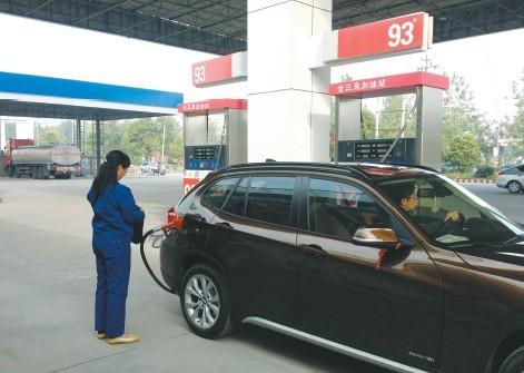 昨天,金三角北二环加油站内,工作人员正在给车辆加油。