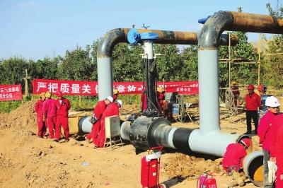 北高压输气干线工程自今年3月16日开工奠基以来,在7个月的时间内,已完成20公里高压长输管线铺设。目前,永登县苦水镇周家庄首站和皋兰九合门站都已进入最后的施工阶段,即将建成竣工。
