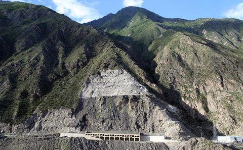 为了修建通向毛儿盖大坝的公路,被削去一边的山峰。大规模的筑坝工程引发了永远改变当地地貌的环境“连锁反应”。