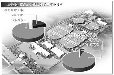 污水处理类上市公司早已开始在国家环保产业大政中受益,以Wind概念板块分类,目前污水处理板块共有21家上市公司,在今年半年报中,这21家中只有4家净利润增长率下滑,其余17家净利润正增长,且平均增长率达到20.05%;主营收入增长方面,上半年该板块21家主营收入平均增长率为27.32%,仅有1家下降。其中主营收入增长率飙升最快的是巴安水务,为84.14%;第二名是万邦达,增长79.39%;碧水源居第三,增长76.56%。销售毛利率上,21家污水处理类上市公司平均毛利率为34.75%,比全部A股上半年平均毛利率27.13%高出7.62个百分点。另外,目前已经有7家污水处理类上市公司公布了三季度业绩预报,且是清一色的“增”势。