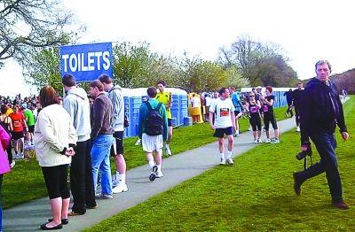 伦敦马拉松赛出发点设在东部远离市中心的格林尼治公园,终点设在市中心的白金汉宫附近。据组委会透露,在马拉松赛的起始点和沿途,一共设立了1250个移动厕所,在出发点还专门设立了400个移动小便池。另外,组委会还为残疾人马拉松选手设立了一定数量的专用移动卫生设备。这些设施全部由一个专门生产移动卫生设备的公司提供,除了解决参赛者的如厕问题,比赛结束后,该公司还负责回收所有的排泄物。 文/新华社