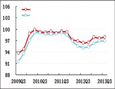 2013年三季度中经钢铁产业①景气指数为97.9(2003年增长水平=100),较上季度回升0.3点,景气状况初显企稳回升迹象。