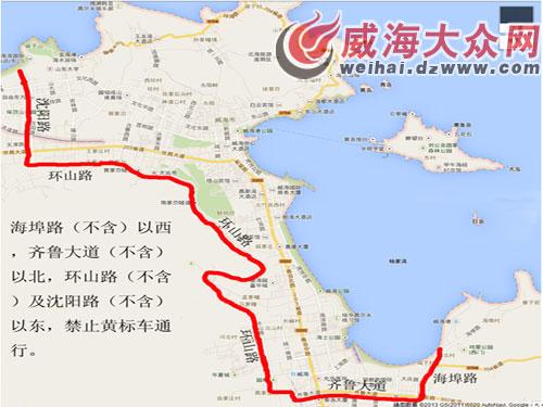 为加强机动车排气污染防治工作,进一步改善威海市大气环境质量,保障市民身体健康,威海市公安局交警支队拟自2013年12月1日起,在市区齐鲁大道以北,沈阳路以东,环山路以内区域(均不包含边界道路,以下简称“禁行区域”),全天禁止“黄标车”通行。