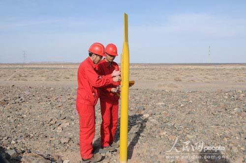 王彪和同事一起巡线,确保西气东输二线管道的安全