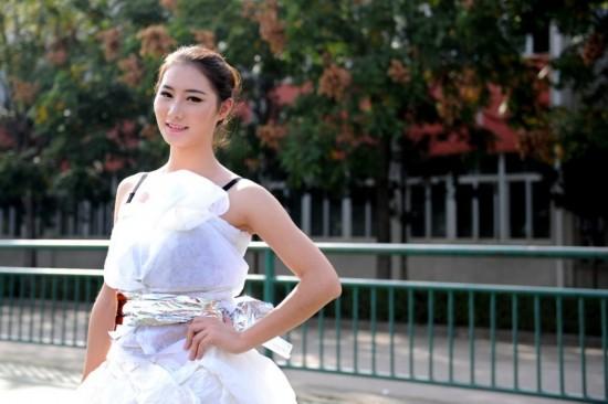 11月15日,湖北武汉市,湖北经济学院法商学院社团联合会举办的法商之星婚纱设计大赛上,25位“模特”身着3米卫生纸制作的创意设计婚纱行走校园,惊艳全场。该校社团联负责人胡敏介绍,该活动旨在倡导低碳环保理念,培养学生实践创新能力。