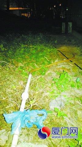 洗车摊的水管连接绿化带水管。
