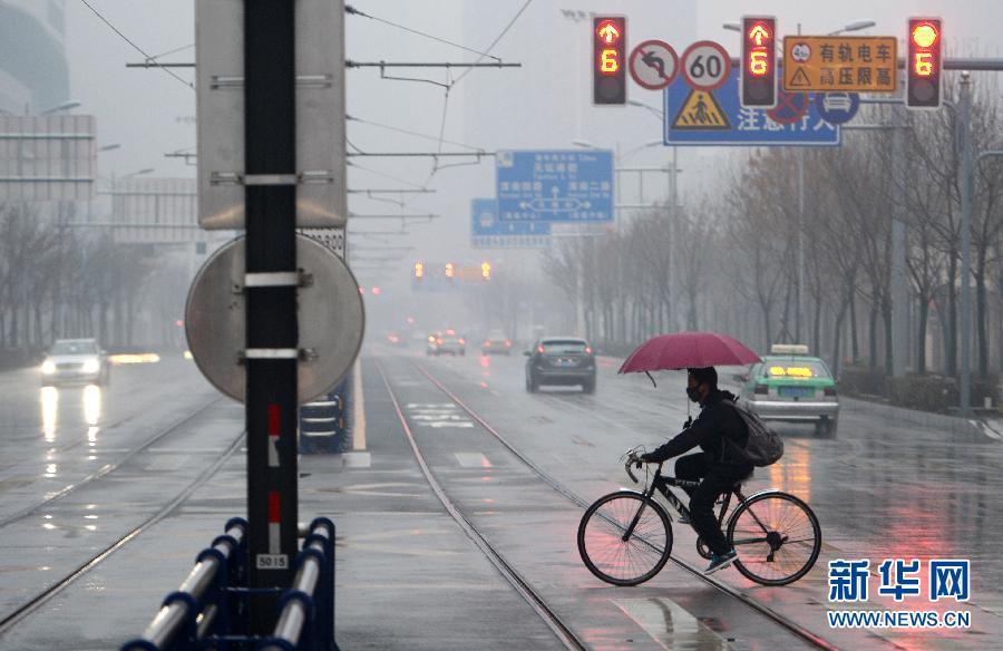 11月24日,市民骑车经过雾霾笼罩的沈阳街头。当日,沈阳再次遭遇重度雾霾天气。14时30分,沈阳市环境空气质量实时发布系统显示最近一小时全市11个监测点位的PM2.5数值中,8个点位达到6级严重污染,2个点位达到5级重度污染,1个点位达4级中度污染级别。新华社记者 李钢 摄