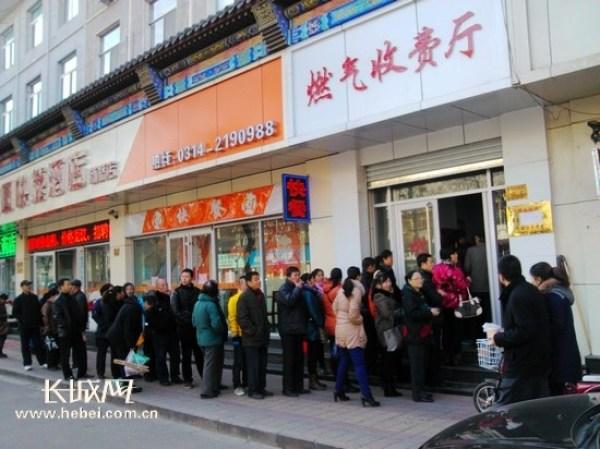 11月24日早7点多,记者在位于承德市广仁大街(西大街)的燃气收费厅门前看到——虽然收费厅还没有营业,但已经有30多人的购气队伍在门前排起了“长龙”。早8点,燃气收费厅营业,虽然购气的流程很简单,半分钟就能完成,但在燃气收费厅门前排队的队伍却越来越长。