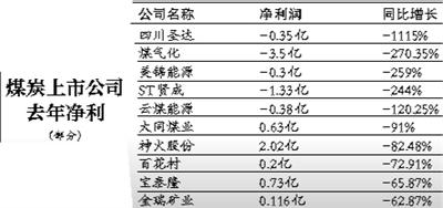 沪深两市39家煤炭上市公司2012年年报显示,兰花科创、永泰能源、黑化股份、大有能源、安泰集团、爱使股份、中国神华、靖远煤电等8家煤企的净利润为正增长,其他31家为负增长。