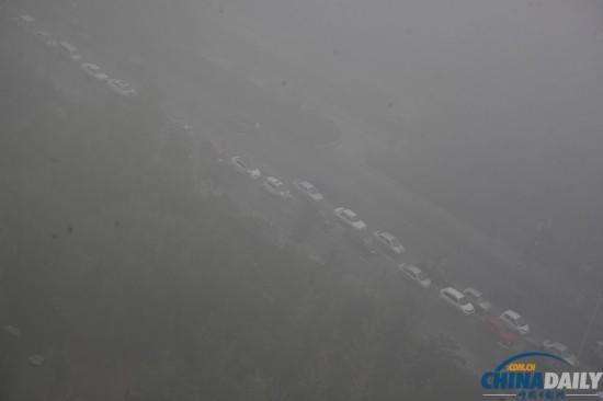 11月2日,济南遭受雾霾天气污染,能见度极低。俯瞰大明湖全景,如同“白纸”一张。(中国日报亚洲新闻图片网 郑涛 摄)(资料图)
