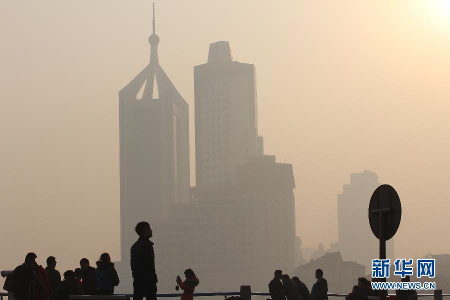 12月3日,游客在雾霾笼罩下的山东省青岛市游览观光。山东省气象台于12月3日17时继续发布霾黄色预警信号,预计3日夜间到4日白天,山东省大部分地区中度霾天气仍将持续。 新华社发(黄杰显摄)